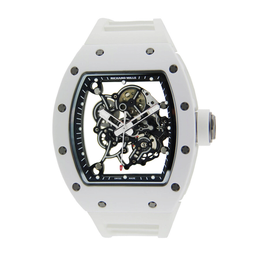 The RM055 distinguishes itself immediately through its groundbreaking case construction. Forged from sleek white ceramic and Richard Mille’s signature North Thin Ply Technology (NTPT) carbon titanium, this timepiece achieves a remarkable duality. The brilliant, scratch-resistant ceramic offers a striking luminosity and enduring resilience, while the NTPT titanium base provides an incredibly lightweight yet robust core. This innovative composite ensures the watch is virtually impervious to the rigors of daily wear, maintaining its pristine, architectural beauty for generations. The combination results in a watch that is both visually arresting and astonishingly comfortable on the wrist, defying expectations of weight and presence.