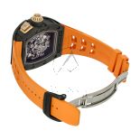 The true spectacle unfolds through the sapphire crystal. The completely skeletonized dial reveals the intricate ballet of the RM004-V3 caliber, a sophisticated chronograph movement with hours, minutes, seconds, and a 60-minute countdown timer. Every bridge, gear, and rotor has been painstakingly hollowed and finished to reduce mass and reveal the mechanics within. The variable-geometry rotor ensures efficient winding tailored to the wearer’s activity. This transparent design philosophy turns time-telling into an immersive experience, inviting you to witness the precise choreography of haute horlogerie in motion.