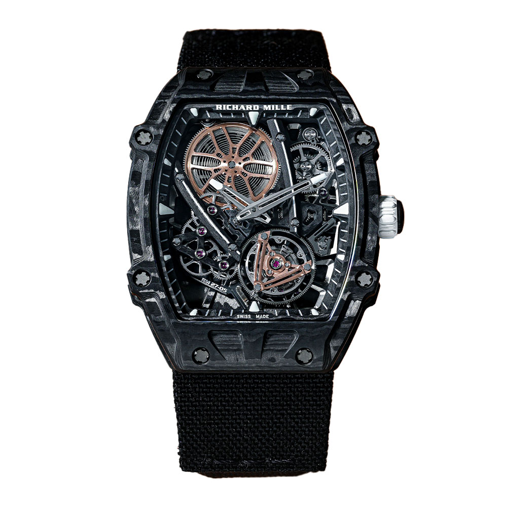 Crafted for resilience and lightweight comfort, the case of the RM 27-05 is a masterpiece of material science. Richard Mille employs its signature Carbon TPT® and Quartz TPT®, materials created by layering hundreds of fine filaments and saturating them with resin. This process yields a case that is phenomenally strong, shock-resistant, and strikingly unique in its marbled, wave-like patterning—no two are exactly alike. The tonneau-shaped case, with its complex curves and signature screws, ensures an ergonomic fit that is both secure and exceptionally comfortable, making it as suitable for active pursuits as it is for black-tie events.