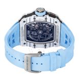 The immediate impact of the RM 35-03 is its formidable yet featherlight presence. The case is sculpted from Richard Mille’s proprietary NTPT Carbon, a material whose complex, layered structure is born from aerospace technology. This results in a strikingly unique wood-grain pattern on every watch, ensuring no two pieces are identical. Beyond its aesthetic intrigue, NTPT carbon provides exceptional strength-to-weight ratio, making the watch incredibly robust yet barely perceptible on the wrist. The case architecture, with its signature tonneau shape, skeletonized lugs, and complex bezel, is a masterpiece of ergonomic design, seamlessly integrating with the strap for ultimate comfort.