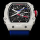 Every curve of the RM67-02’s case is ergonomically sculpted, ensuring a seamless, second-skin fit that is both secure and supremely comfortable. The dial is a masterpiece of technical artistry, offering a mesmerizing view of the movement’s intricate mechanics. Skeletonized hands glide over a layered, openworked face, where function becomes art. The signature Richard Mille aesthetics—the tonneau-shaped case, the spline screws, and the complex, architectural beauty of the exposed movement—are all present, executed with a finesse that belies the watch’s rugged capabilities. The strap, seamlessly integrated into the case lugs, is a custom-made rubber or textile band that completes its dynamic, unified look.